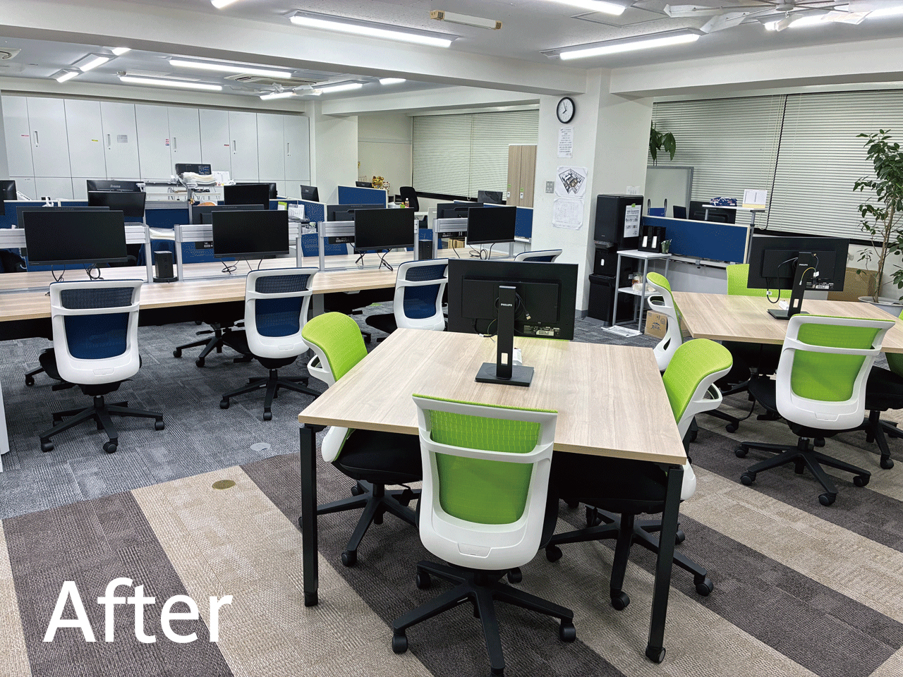 この度、働きやすい環境づくりの一環として、本社ビルの一部をフリーアドレスのワークスペースへ改装いたしました。